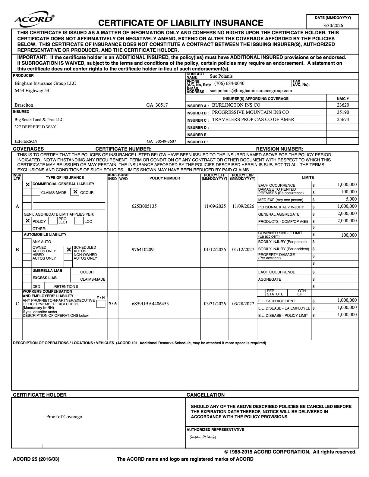 At Big South Land & Tree LLC, we offer a wide range of tree services including tree removal, tree pruning, 24/7 emergency tree removal and storm response, property cleanup, land clearing and much more. Big South Land & Tree LLC will remain in compliance with American National Safety Institute (ANSI) Z133, Standard of Safety for Arboriculture Operations at all times during the process of completing your project. All pruning will be performed in accordance with ANSI A300 Tree Care Standards & Best Practices in Arboriculture.